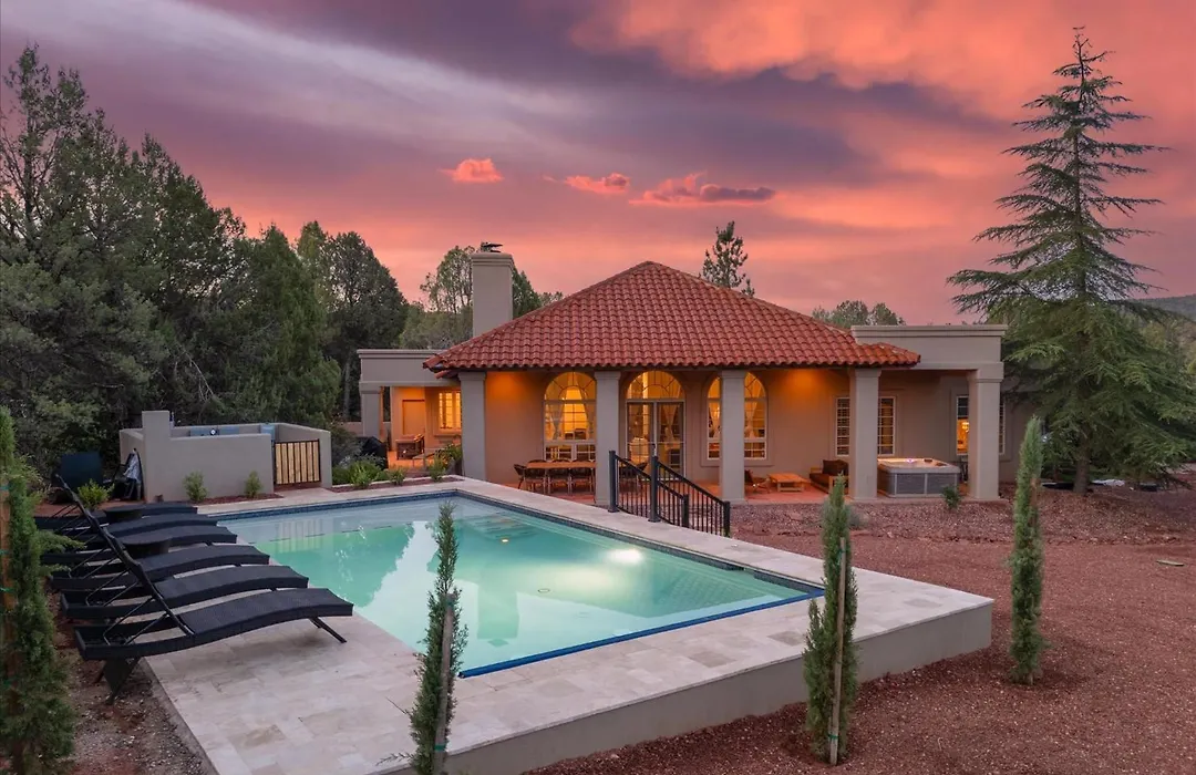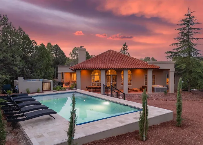This property has an equipped kitchen, including an electric kettle, a fridge, and a kitchenware. Located within a few blocks of Game Room Outdoor Fun Hot Tub Games Bbq More villa, Sedona Medical Center bus station offers transportation choices in the vicinity. There is a private swimming pool to relax, as well as cycling and fishing.